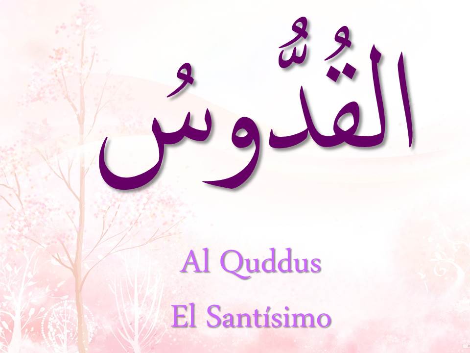 - Ibnul Qayyim dijo que Al Quddoos significa Aquel que está Libre y por Encima de cualquier sharr (mal), cualquier naqs (deficiencia) y cualquier ‘aib (Falta). En otras palabras, Él está Muy por Encima de aquello que no está al nivel de Su Complacencia. Él es el Puro, quien no posee ninguna falta o deficiencia.