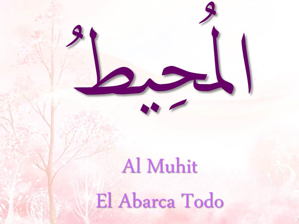 El nombre Muhit aparece 9 veces en el Quran y está en la estructura gramatical superlativa o mubálaga فَعيل fa3il, lo cual implica continuidad, potencia, y constancia. Muhit es un atributo que puede asignarse a la creación de Allah y significa lo que abarca, pero cuando se describe a Allah con este Atributo entonces Al Muhit significa: