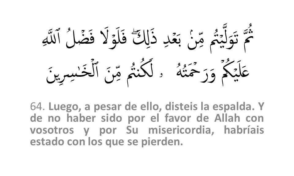 Si no fuese por la Gracia de Allah sobre ustedes y Su Misericordia, Ciertamente hubiesen sido de los perdedores: