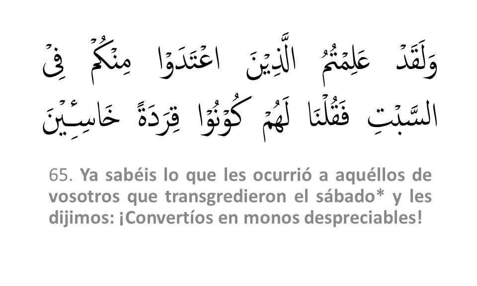 Los sahabas le preguntaron al profeta Muhammad (saws) si los monos y cerdos contemporáneos con ellos eran descendientes de los judíos que habían sido transformados. El profeta (saws) les recordó que los monos y los cerdos han existido desde antes del incidente de la transformación y que en estos casos, cuando Allah envía un castigo de esta dimensión, los transformados no pueden reproducirse. (Muslim)