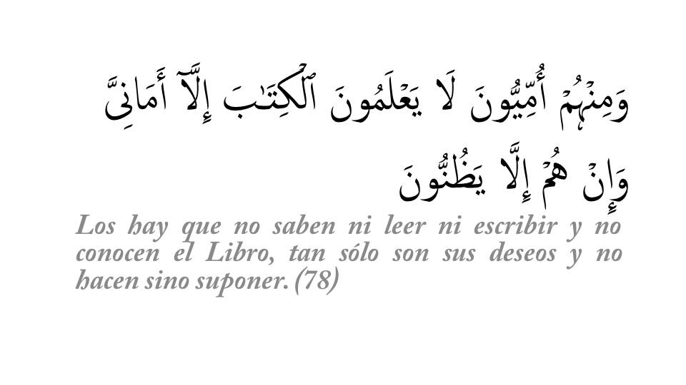 De los hijos de Israel algunos son ignorantes sobre lo que dice la Torah, y están influenciados por aquellos que manipulan las escrituras, llenos de supersticiones y mentiras sobre su religión por ende solo siguen suposiciones. En este verso, Allah utiliza la palabra ‘yadhunnun’ verbo que proviene de la palabra dhan, la cual tiene 3 significados: