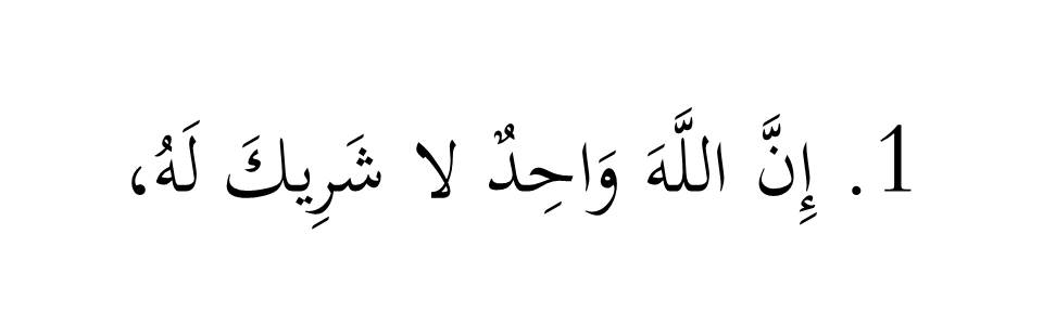 Incluye sus creencias sobre las bases teológicas de la religión en la que ellos basan su adoración del Señor de los Mundos. Decimos con respecto a la creencia en la Unicidad de Dios, como Creyentes, y con El Éxito que Dios Otorga: