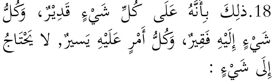 Él tiene el poder de hacerlo todo, todo es dependiente de Él y todo es fácil para Él Y El no necesita nada