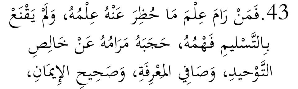 Quien desee un conocimiento y esté insatisfecho con los límites de su entendimiento, entonces se encontrará con que su deseo vela el entendimiento puro de la unidad de Allah, y de la comprensión inalterada y de la fe sana,